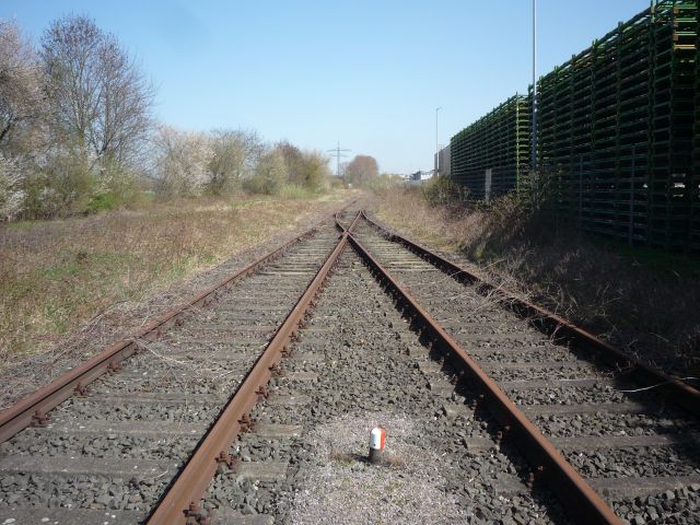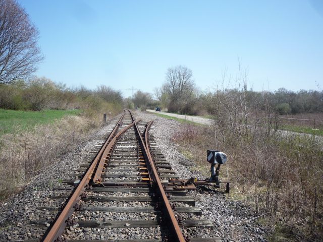 Der Abzweig der Weiche führt nach rechts zum Entsorgungszentrum Landau. Das ursprünglich geradeausführende