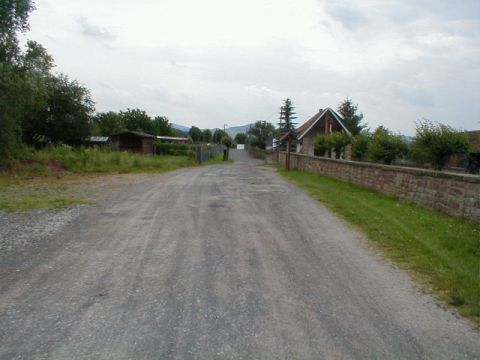 Die Trasse führt nun am Friedhof entlang und erreicht bei km 2,3 das Ortsende.