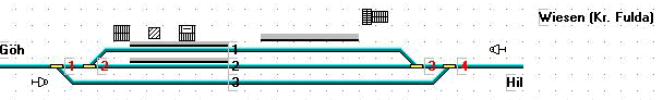 Der Bahnhof Bieberstein lag in der Mitte des "S" und war als Kreuzungsbahnhof mit 3 Gleisen