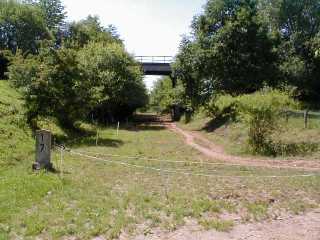 Hier wird ein Feldweg aus Förtha über den Bahneinschnitt geführt.